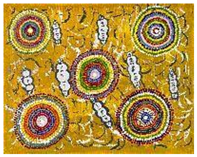 Bush Tucker Tjukurpa, a sacred and deeply meaningful aspect of the culture. Through her art, she represents the native foods that her people harvest from the land—foods that have sustained her ancestors for thousands of years.